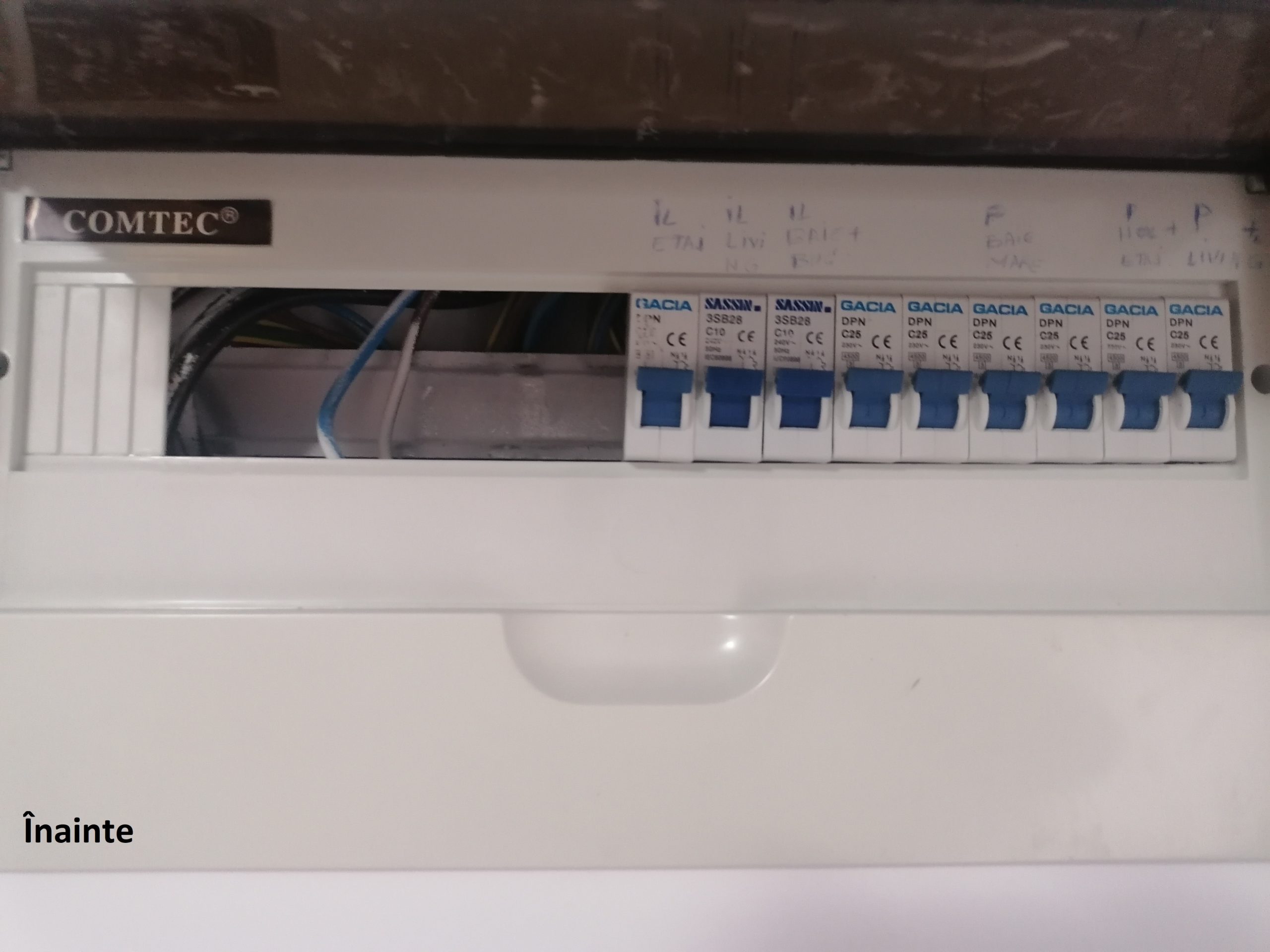 - înlocuire siguranțe automate tablou electric, adăugare siguranță generală și modul protecție împotriva electrocutării.