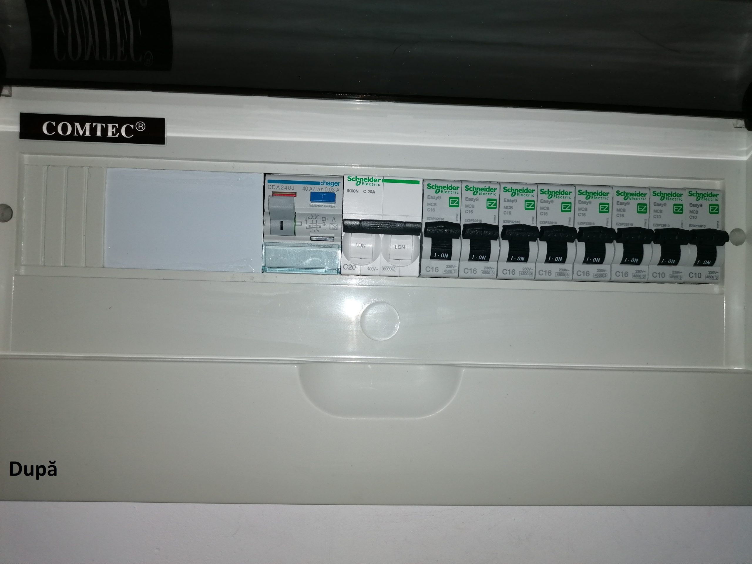 - Inlocuire tablou electric, cu montare protectie la supratensiune si subtensiune, protectie la electrocutare, protectie scurt circuit si supra curent.